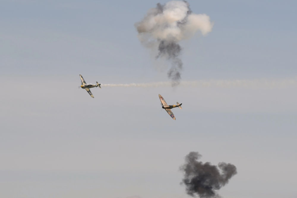 aircraft staged a dramatic dogfight over Duxford airfield. |