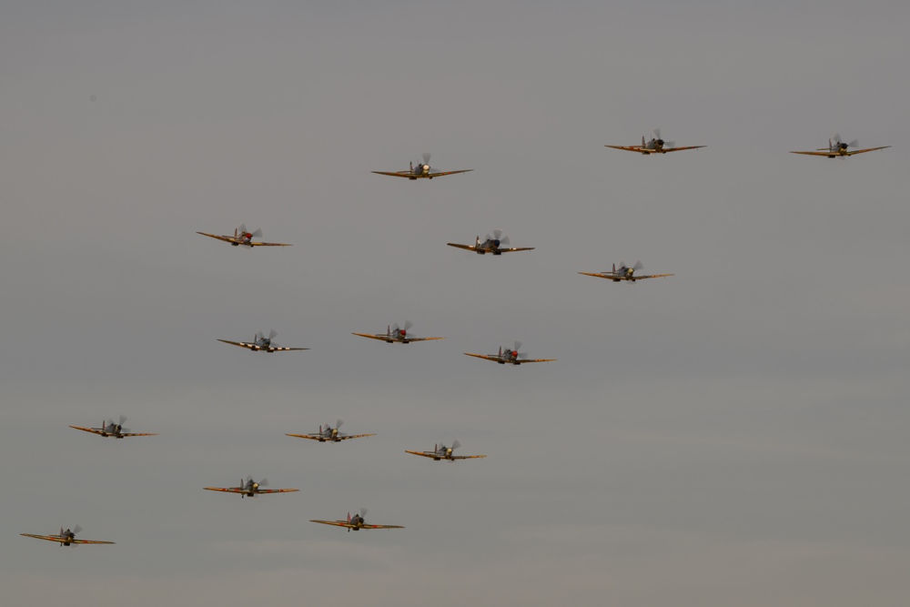 The Duxford “Big Wing” featuring twelve Spitfires and four